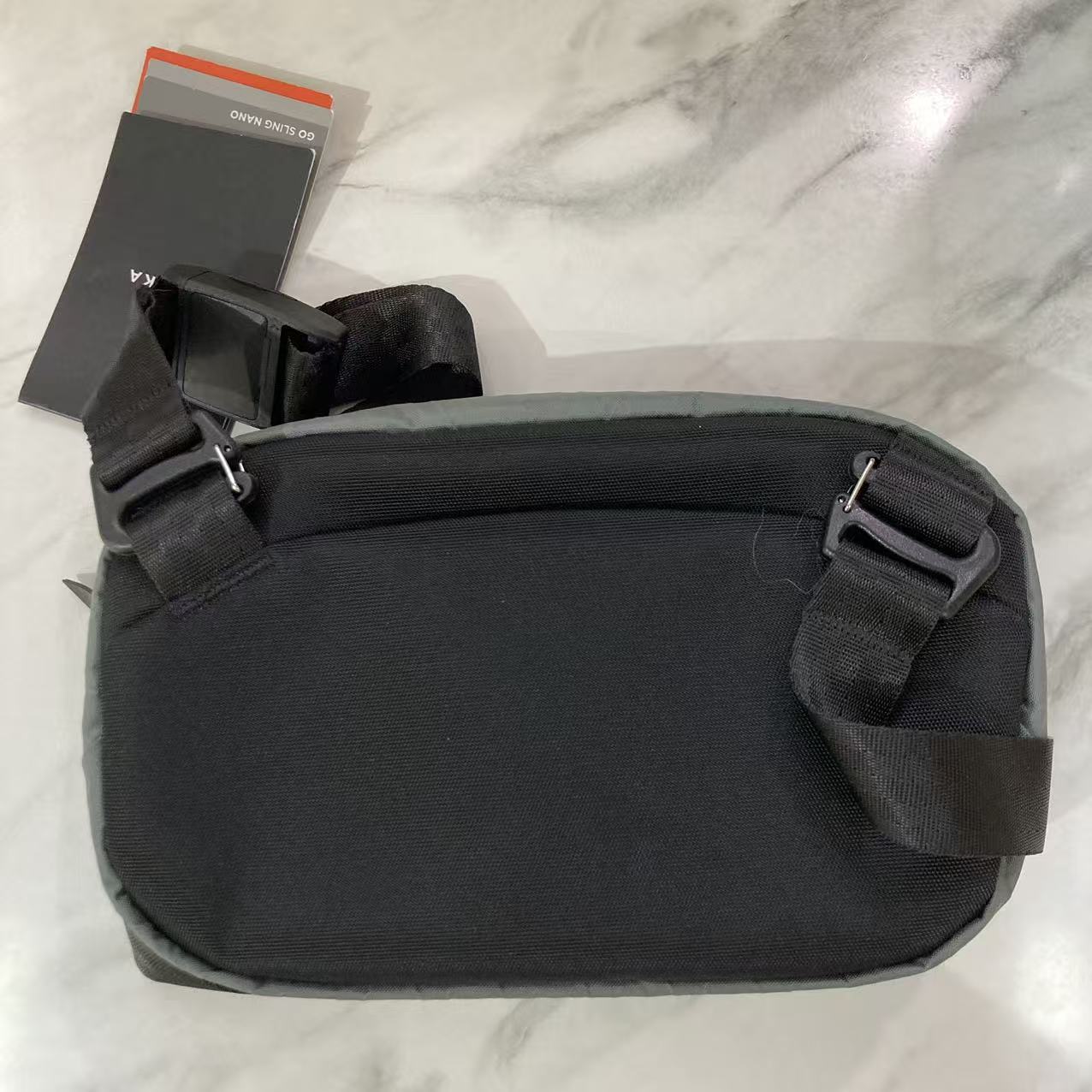 Go Sling Nano 寬敞的隔層內襯有 300D 冷灰色蜂窩防撕裂尼龍襯裡。