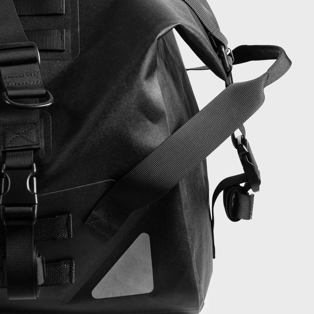 外部提供 8 排 MOLLE 織帶,支援 MOLLE 相容配件擴展,按需要加掛工具袋、扣具或其他小配件,令系統更靈活。前方加入 3M 高反光織帶及反光 Logo 印刷,夜間騎行或低光活動更易被看見。搬運方面,袋身兩側設有提把;頂部手挽同肩帶亦可作額外固定用途。手挽採用可拆式魔術貼加墊設計,拎耐啲都更好手。