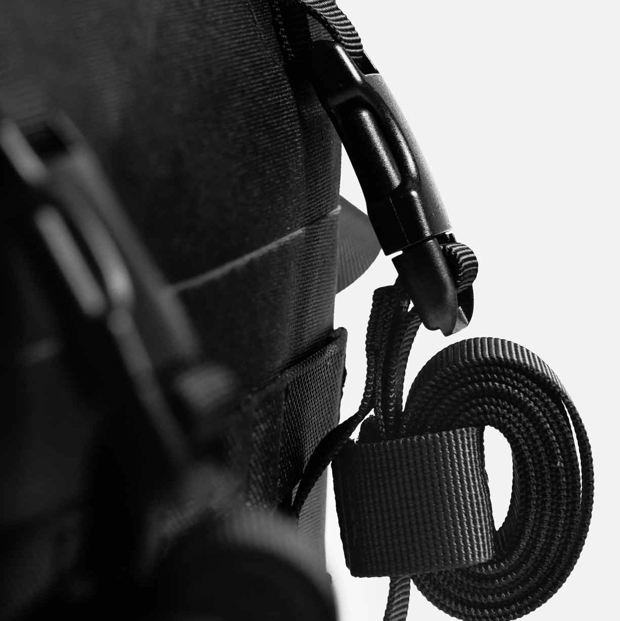 可用於壓縮袋身以減少體積,或在滿載時加固負重,令裝備更貼合、更穩定。