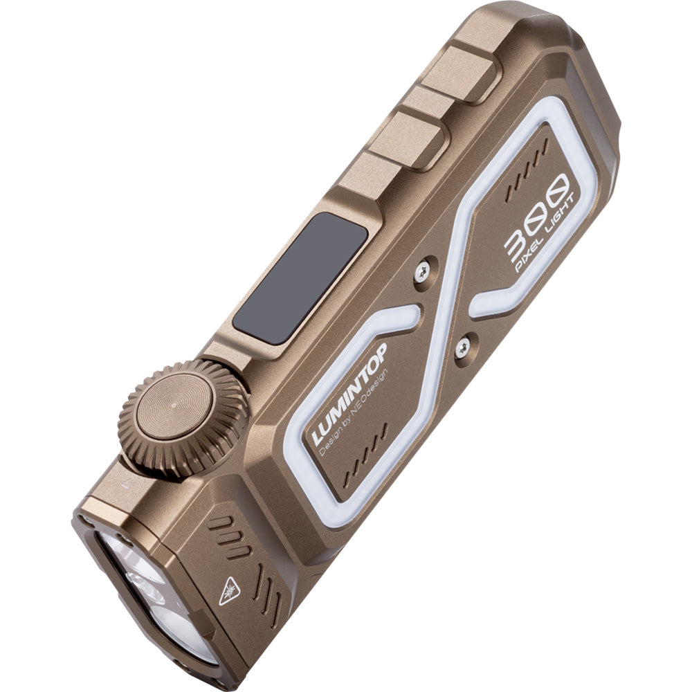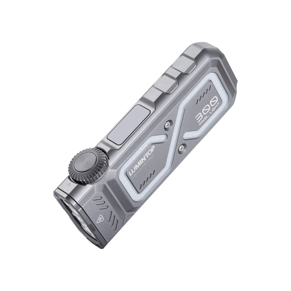 LUMINTOP Pixel Light 是一款主打「一機多用」的扁身多功能手電筒,把遠射 Spot Light、廣角 Flood Light、365nm UV 紫外光、**10mW 綠光雷射(520nm)**及 RGB 氣氛燈整合於纖薄機身之中,兼顧照明、指示、檢測與氛圍應用,適合日常、露營及戶外備用。