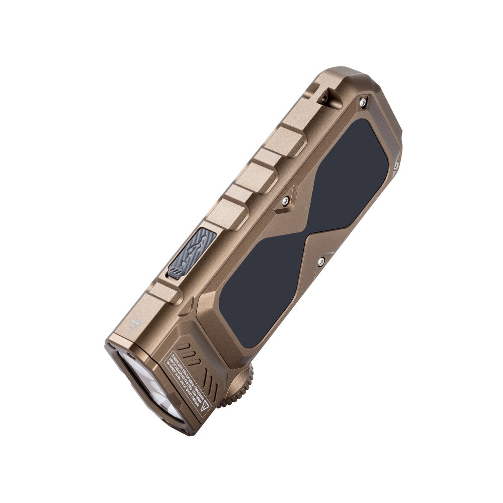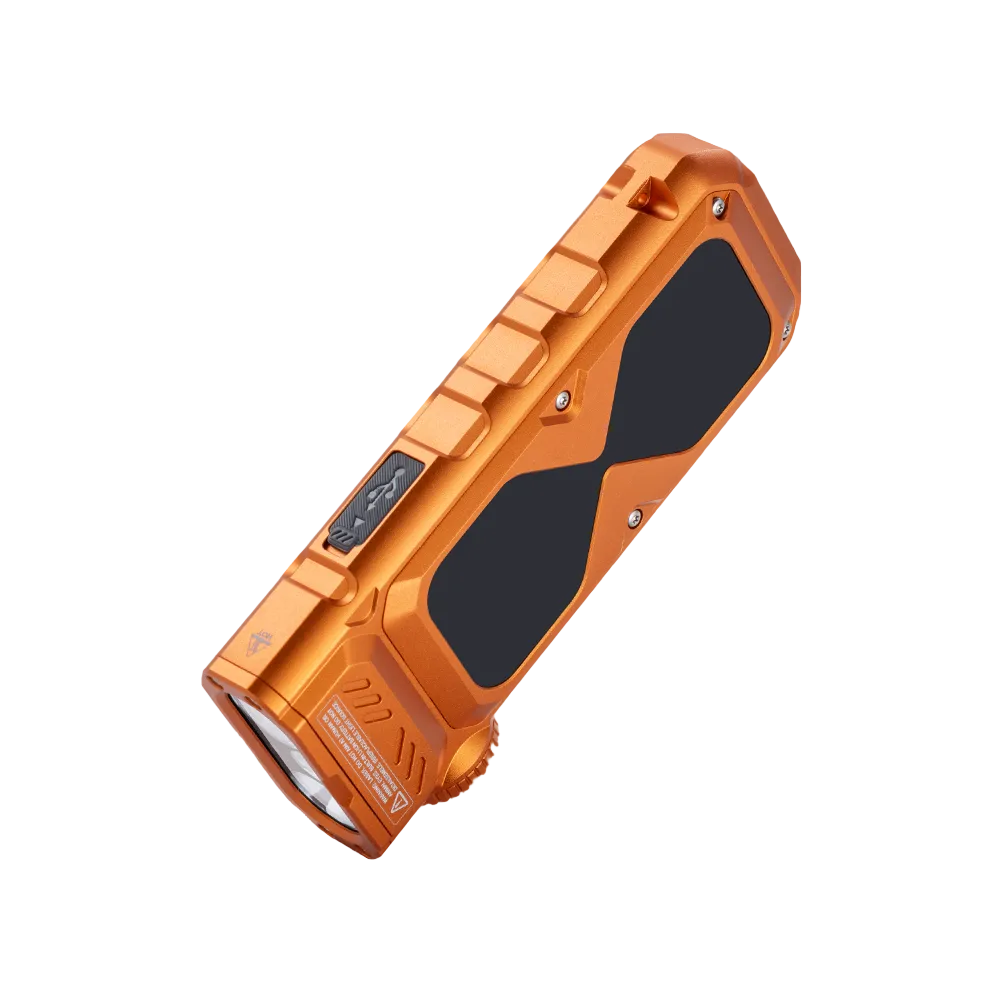 輔助光源方面,365nm UV 光適用於螢光檢測、文件驗證等;綠光雷射具高可視度,便於指向及定位(使用時須避免照射眼睛/皮膚及易燃物等)。RGB 提供 8 種創意效果,並具 RGB Hourglass 重力感應互動模式,可作營地氣氛燈、攝影補光或夜間裝飾。內置顯示屏可清晰顯示亮度輸出、模式及電量等資訊;採用 2000mAh 鋰聚合物電池並支援 USB‑C 充電。防護方面具過充、過放及溫度保護,另標示 IPX6 防水及 1m 抗跌,更適合戶外攜帶使用。