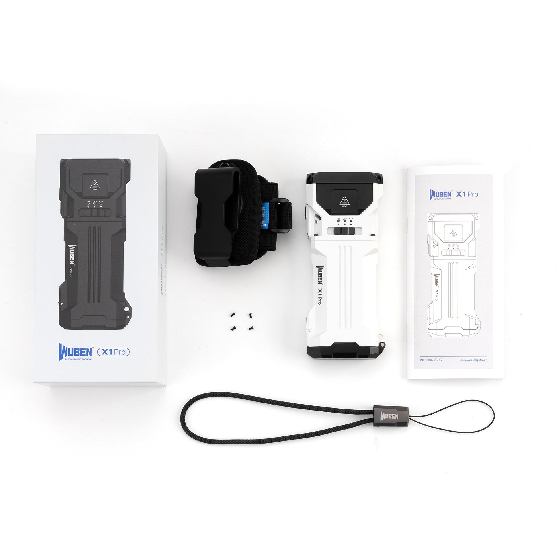 Wuben X1 Pro IP65 防塵防水鋁合金機身,黑白兩色可選,戶外探險、露營維修、日常 EDC 都適用,硬核可靠,一燈多用。最高亮度達 12300 流明,媲美車燈級照明,搭配點光 + 泛光雙模式,遠射可達 410 米,泛光覆蓋 125° 廣角,探險、露營、夜間搜尋、日常維修都能滿足。 为探险者而生 提供极其强大的光束,达到极端亮度水平,在户外、战术和紧急情况下确保清晰可见,毫不妥协。Wuben X1 Pro 以 硬核機甲風 打造,全機採用高強度鋁合金材質,表面經過細緻的磨砂陽極氧化處理,質感細膩且不易留指紋,同時提升耐磨與抗刮能力 主打高輸出、大廣角光束,光線強勁且分佈均勻,輕鬆照亮大片區域,帶來清晰開闊的視野。